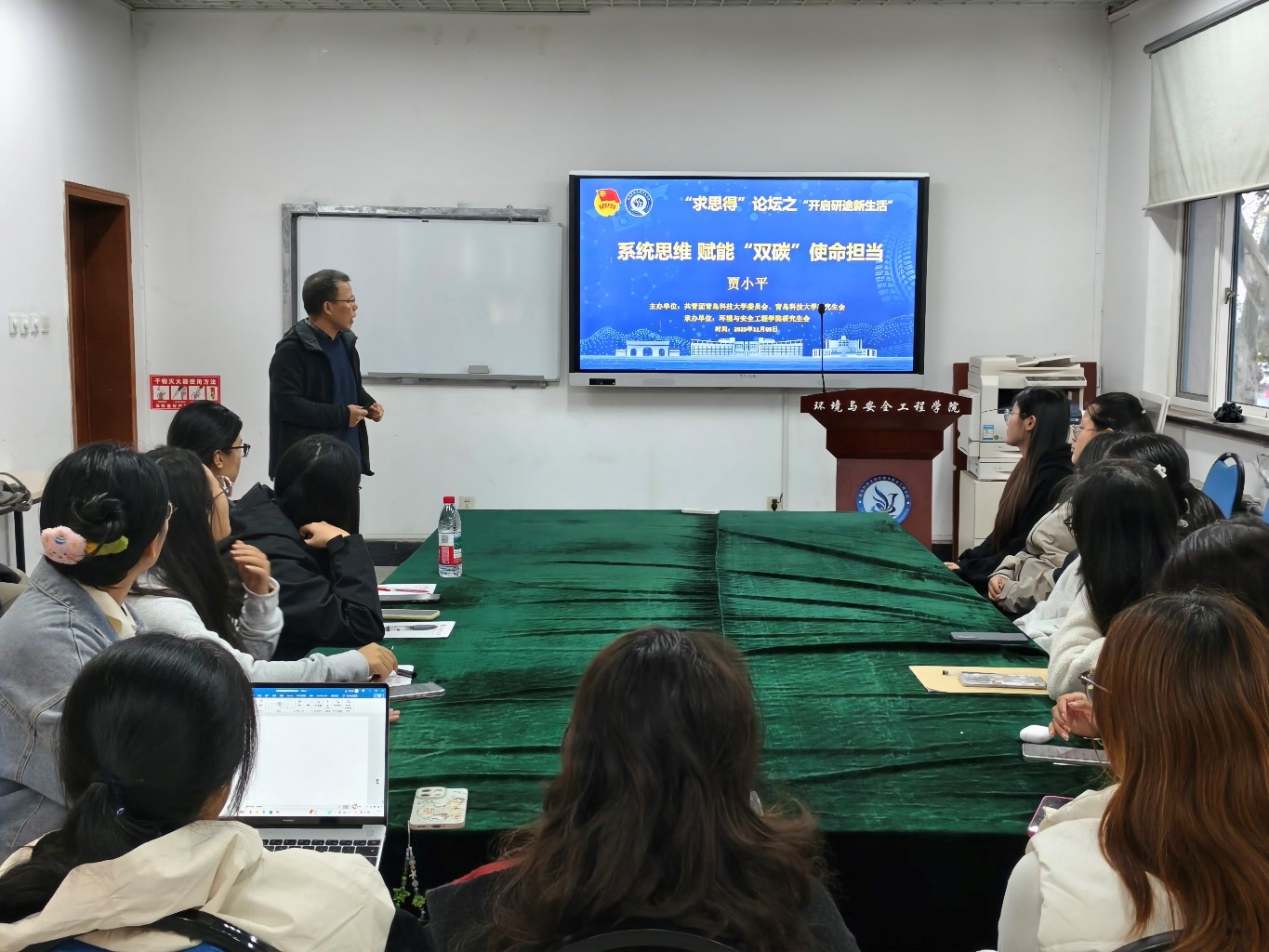 11月5日,yl6776永利集团举办“求思得”论坛之“开启研途新生活,系统思维赋能‘双碳’使命担当”专题报告会。贾小平教授作为本次论坛的主讲人,以“科研之得=有求+有思+有行动;人生之得=有求+有思+有行动”开篇,强调做学问要明事理、有思路能做事、有行动能成事的理念,从系统思维的角度,剖析了“双碳”战略的内涵与实施路径。