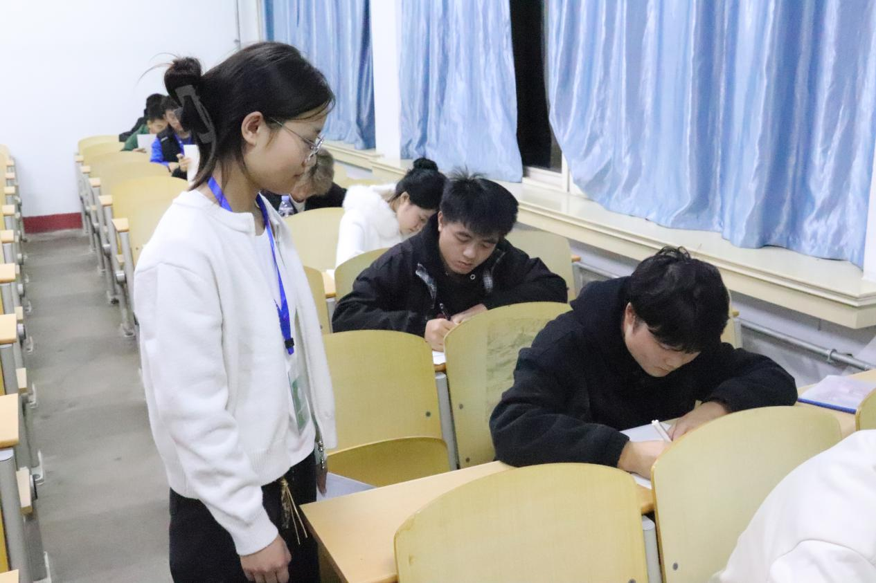 考试期间,各个考场由学生党员进行监考,规范完成试卷分发,严格落实考试纪律。同学们提前10分钟有序就坐、沉着作答,自觉遵守考场纪律。